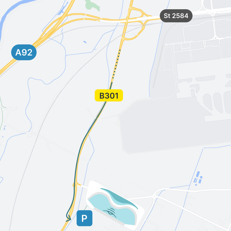 Verlass die A92 an der Ausfahrt "Münchner Flughafen" in Richtung "Freising Süd/Hallbergmoos" und bieg dann links auf die B301 in Richtung Hallbergmoos/Neufahrn ab. Folge der B301 eine Weile und nimm im Kreisverkehr die erste Ausfahrt. Direkt danach biegst du links in die Dornierstraße ab. Anschließend biegst du direkt wieder links in die Messerschmittstraße ab. Gib am besten die Messerschmittstraße 3, Hallbergmoos ins Navi ein, damit du direkt beim richtigen Parkplatz ankommst.